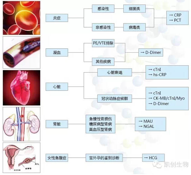 + 快速及時的診斷系統 ↓ 凱創POCT免疫層析定量分析系統及系列定量產品 ※ 醫院急診、門診部門患者最常見的臨床表現 胸痛、呼吸短促、呼吸困難、發燒、咳嗽、水腫、腰痛、尿中有泡沫、血尿、女性急腹癥(宮外孕鑒別)等癥狀。" />